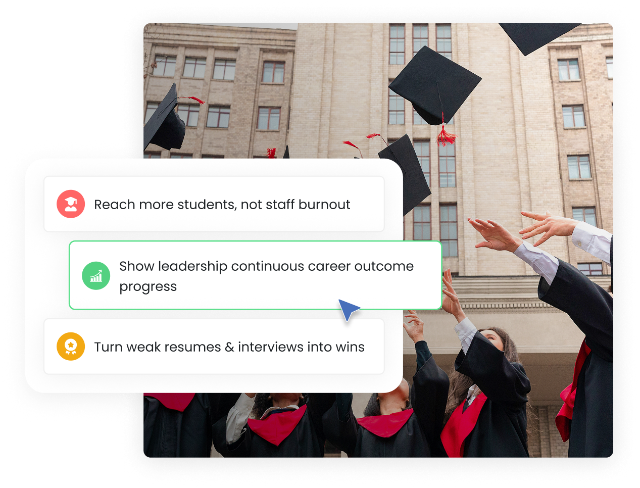 Enable students to build powerful relationships with mentors and career center staff.